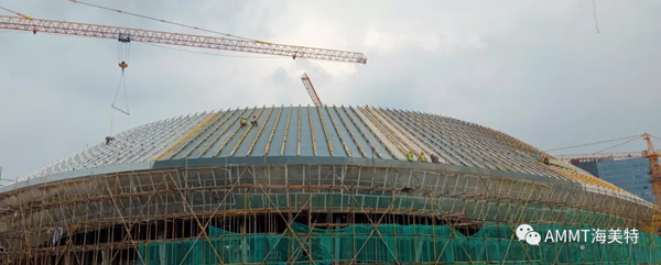 場館整體以“星際漩渦”為設(shè)計(jì)理念,總建筑面積約8萬方,擁有座位4087個,其中以設(shè)計(jì)聚脲作為防水的區(qū)域面積為1.5萬平米。青島海洋新材料科技有限公司聚脲材料成為電競館屋頂防水唯一指定聚脲材料。